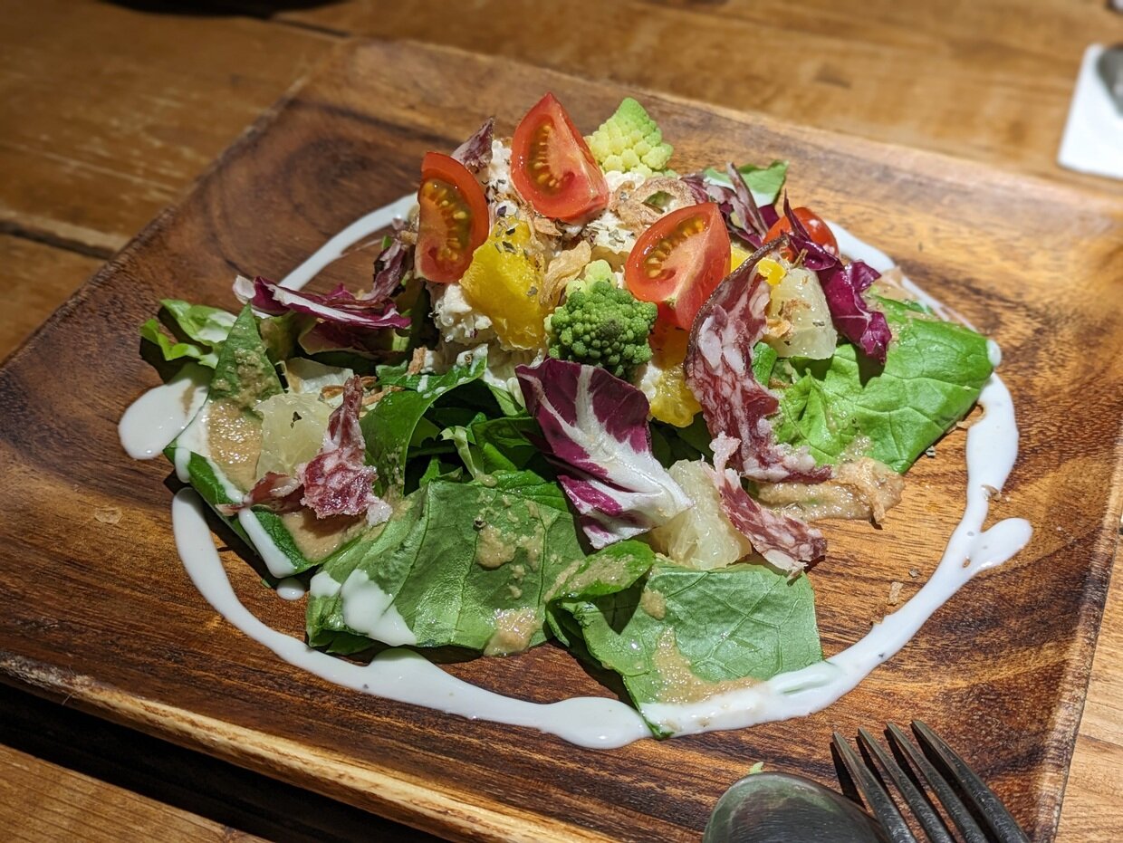 一品目は、北海道産 炙りさばスモーク納豆カルパッチョ