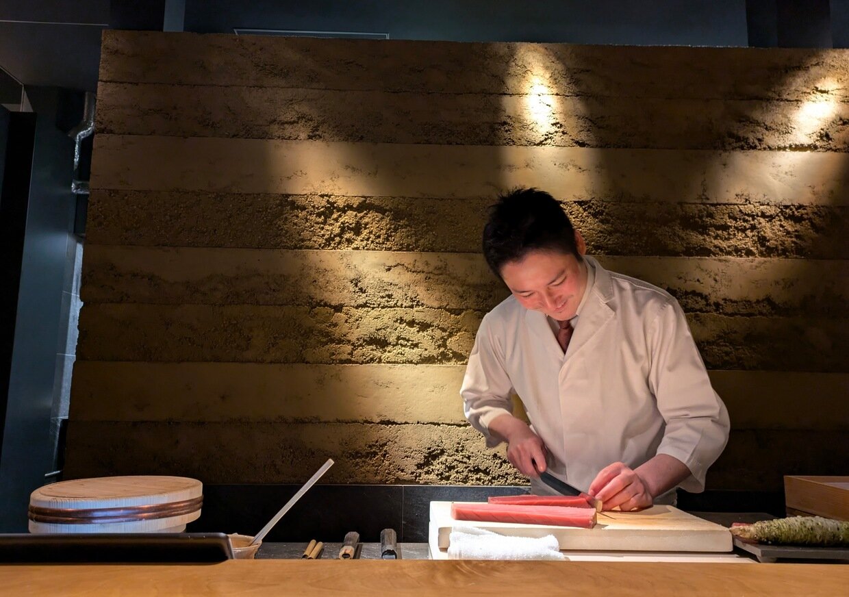 お客の目の前で包丁をしながら、様々なジャンルのお客様と会話をスマートに進める技術力と会話力は、カウンター料理人ならではの能力です。