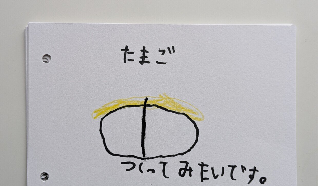 大きな玉子ずしおいしそう!オレンジと黄色で書いた文字がなんだか食欲をそそりますね!