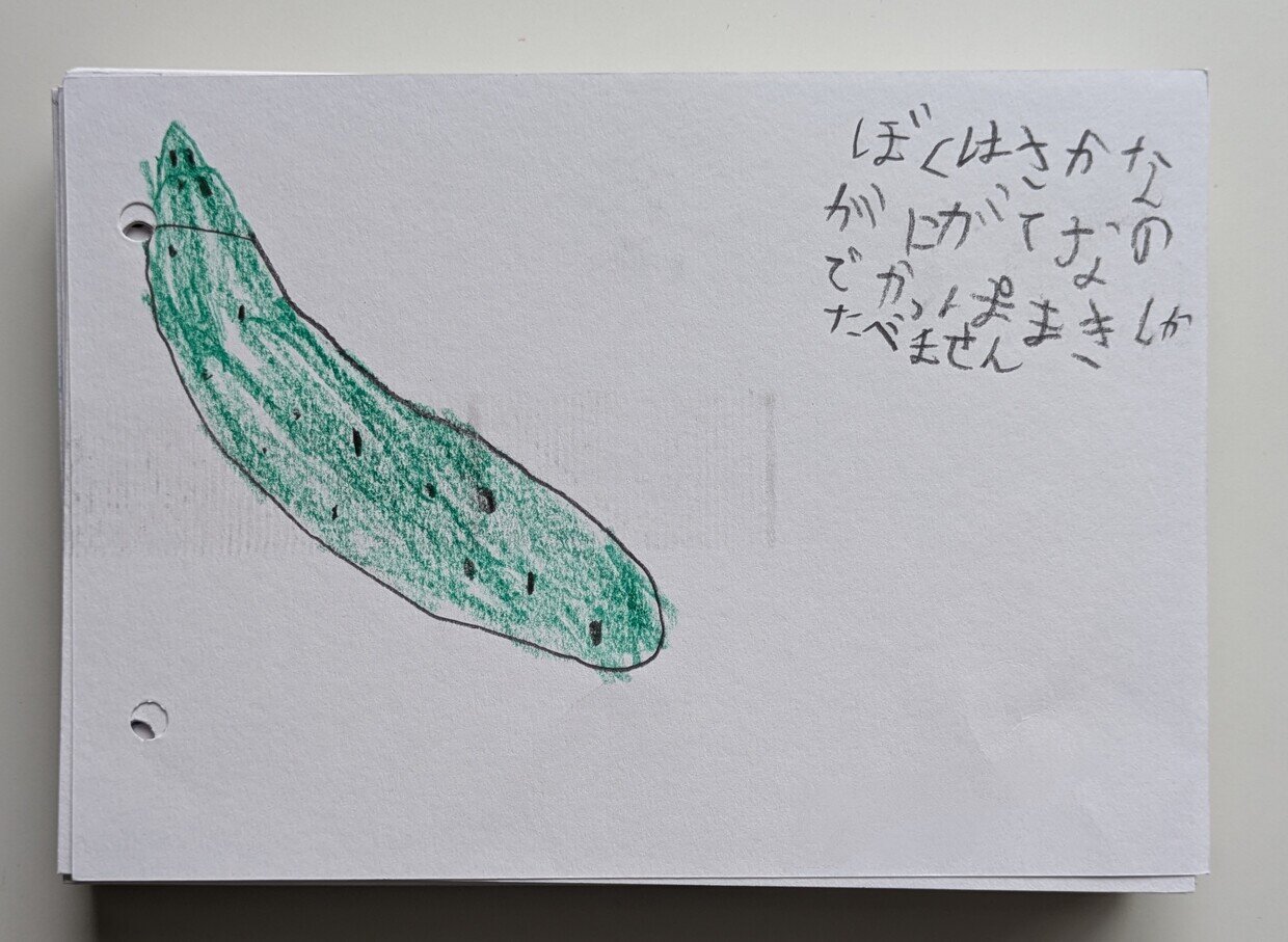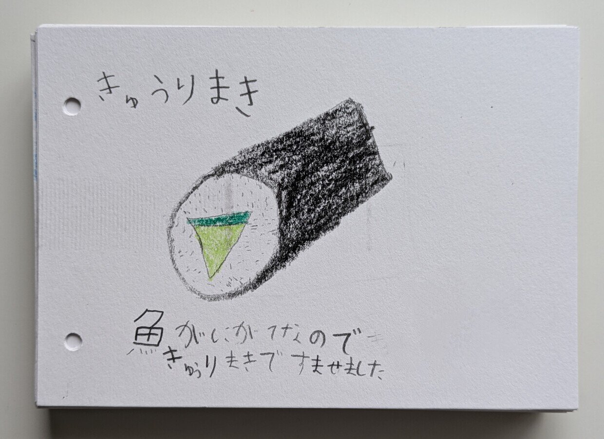 海苔巻きの中に隠れたキュウリが見えるように描かれていて感激しました!