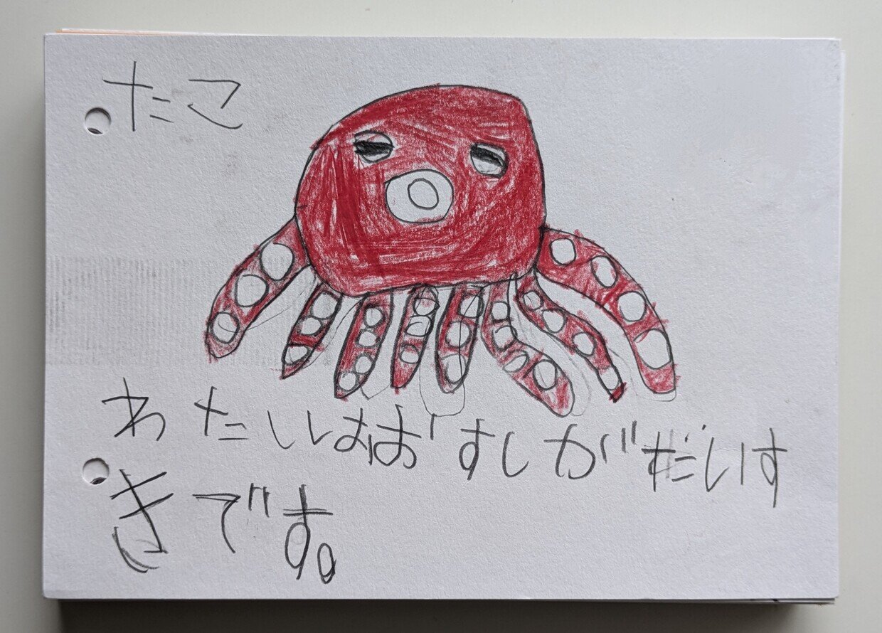 「わたしもおすしだいすきほかにももっといろいろな魚をたべたいです。」