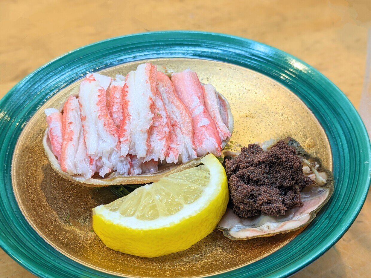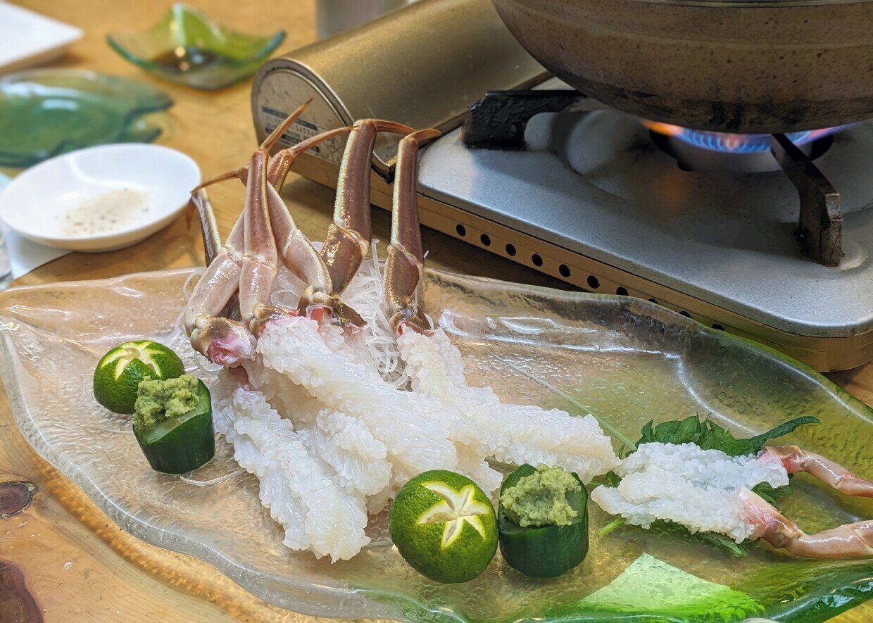 ズワイガニのしゃぶしゃぶにカニみそをのせて