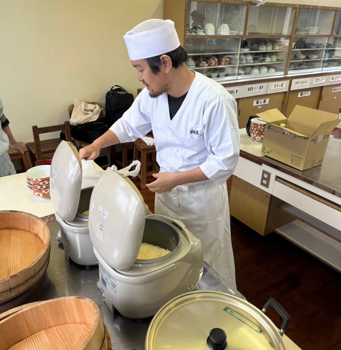 調理室で酢飯の準備を整えます。