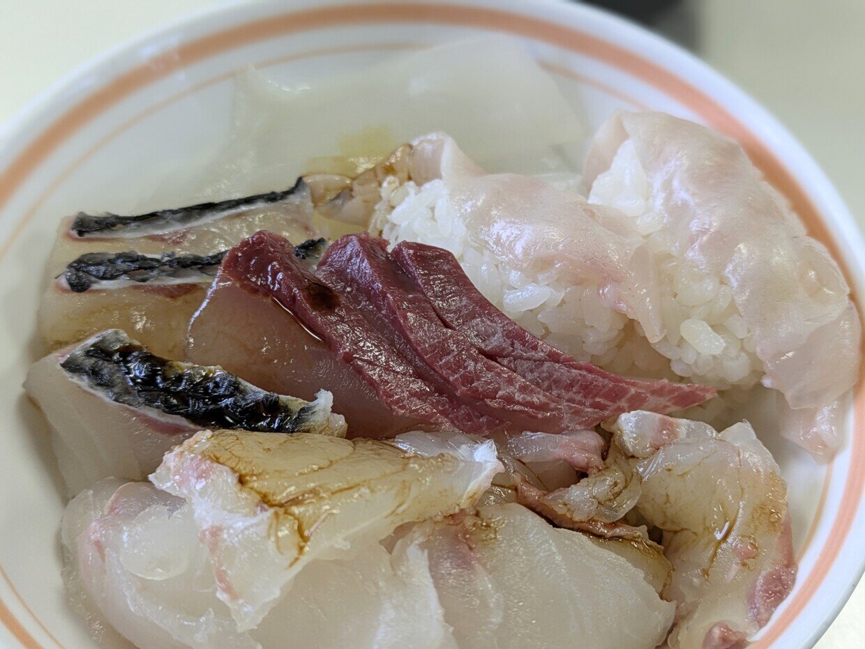 酢飯が見えなくなるほど、平戸の魚で埋め尽くされた丼ぶり。