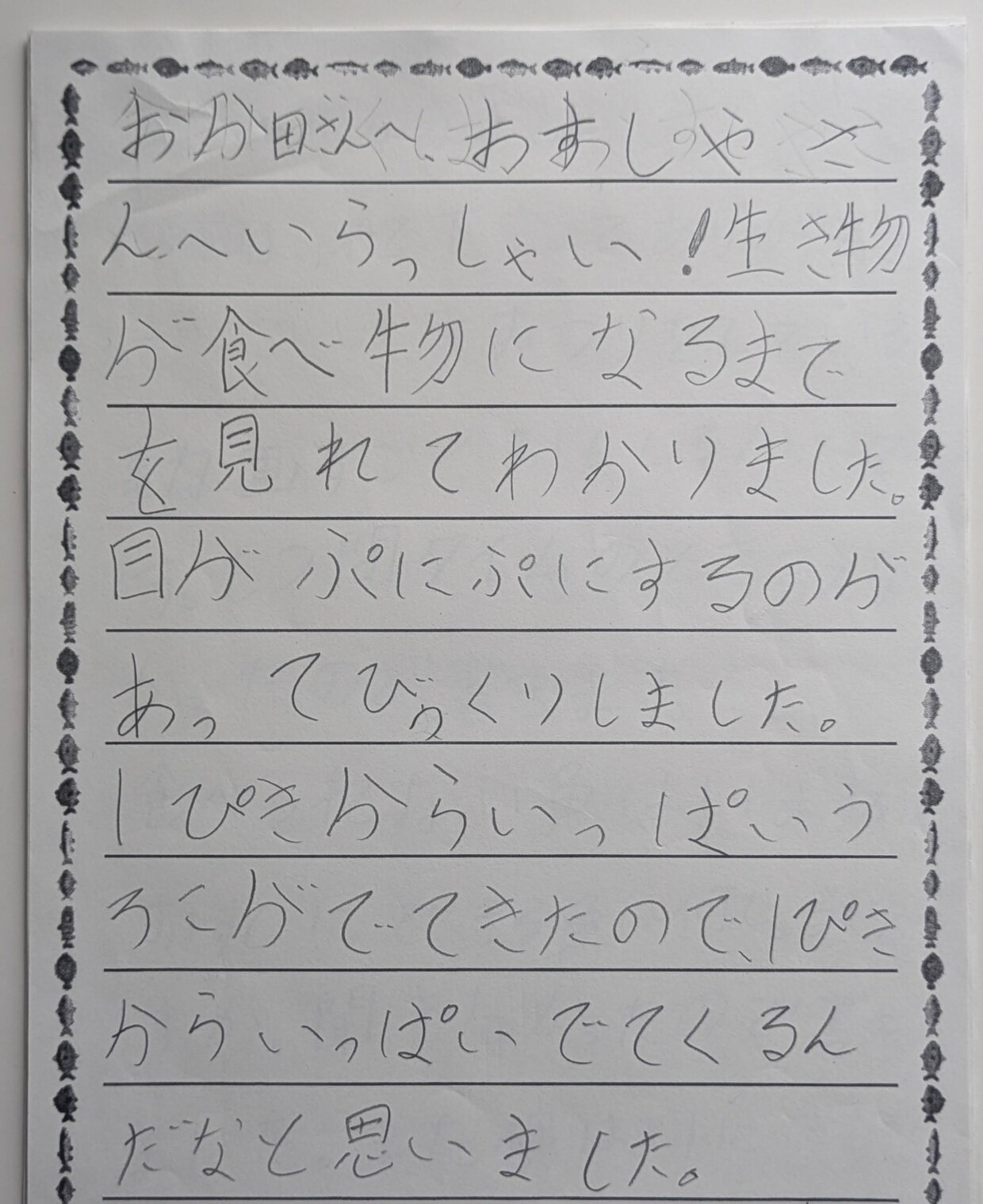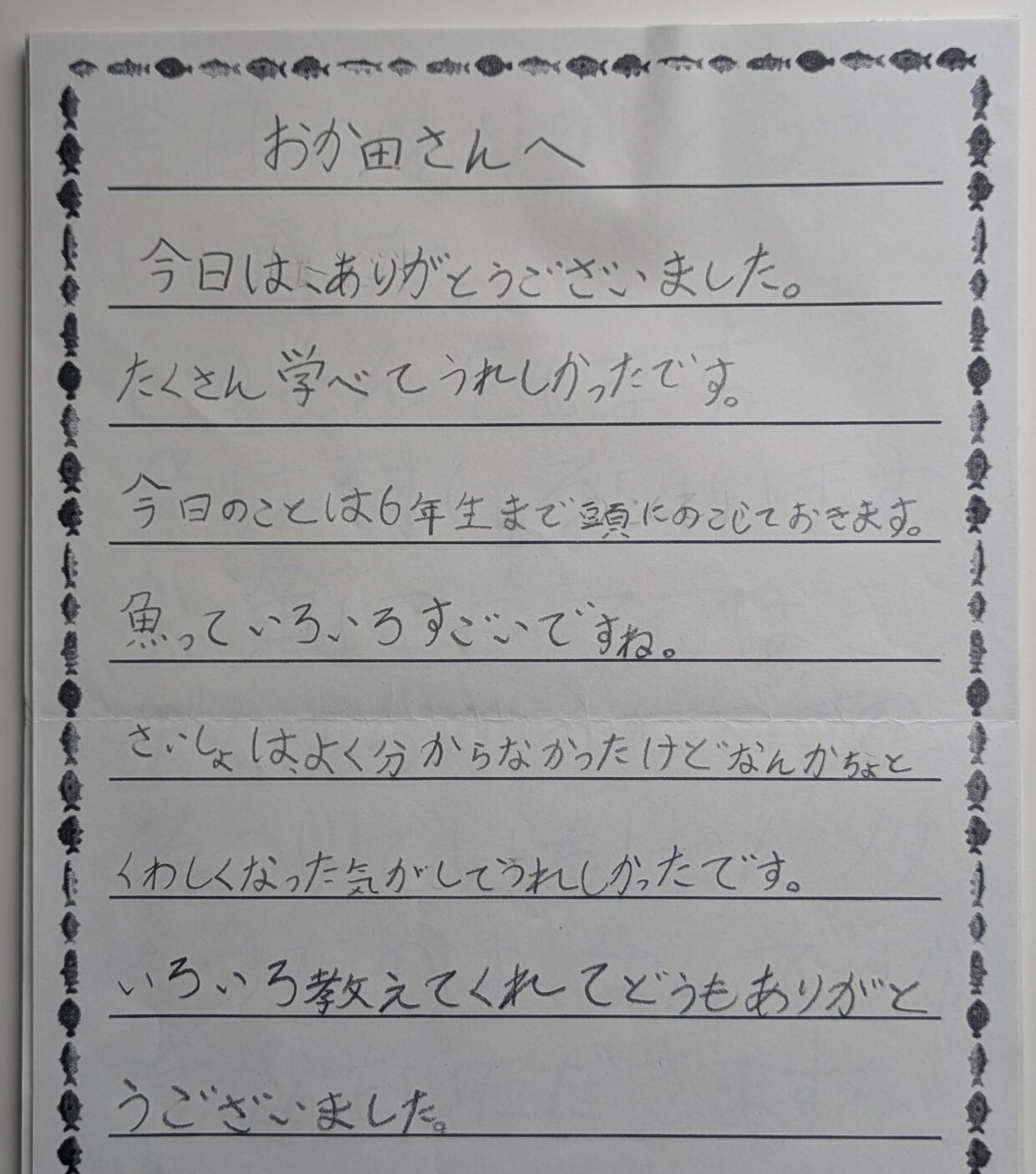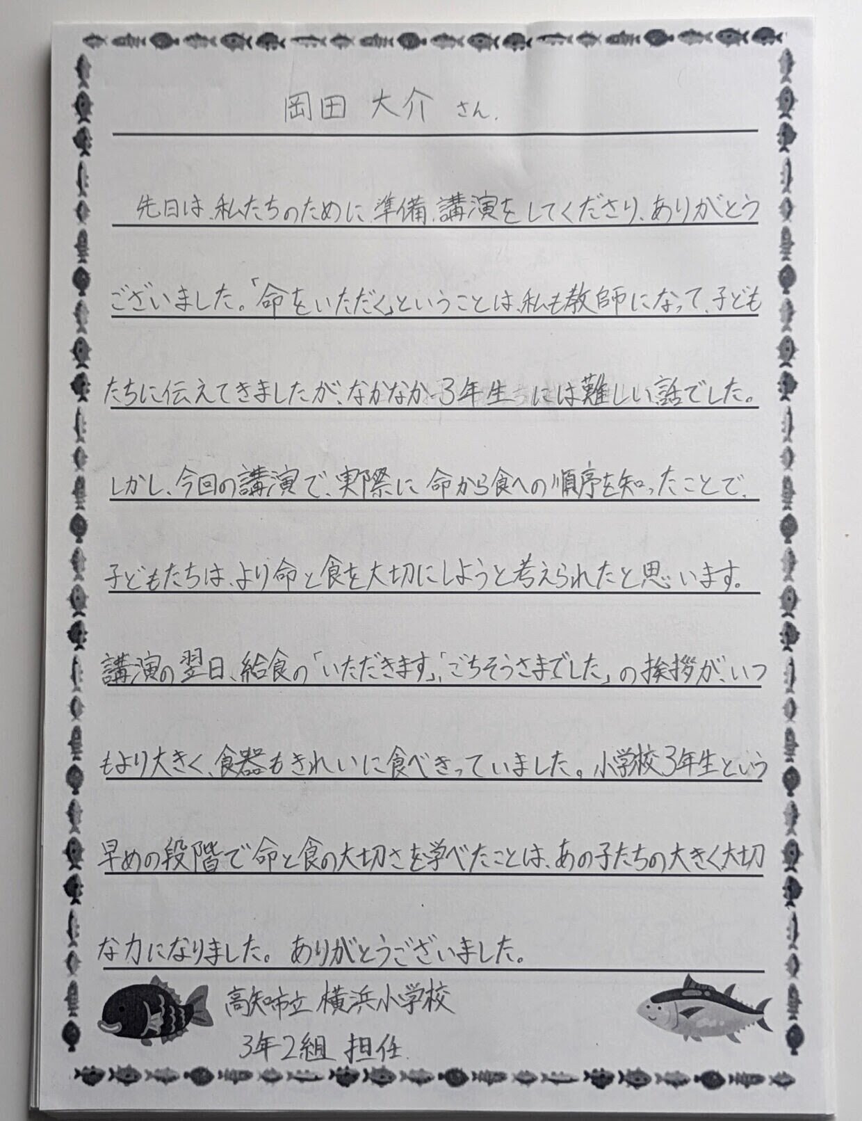 後日、横浜小学校のみんなから感想メッセージが届きました。