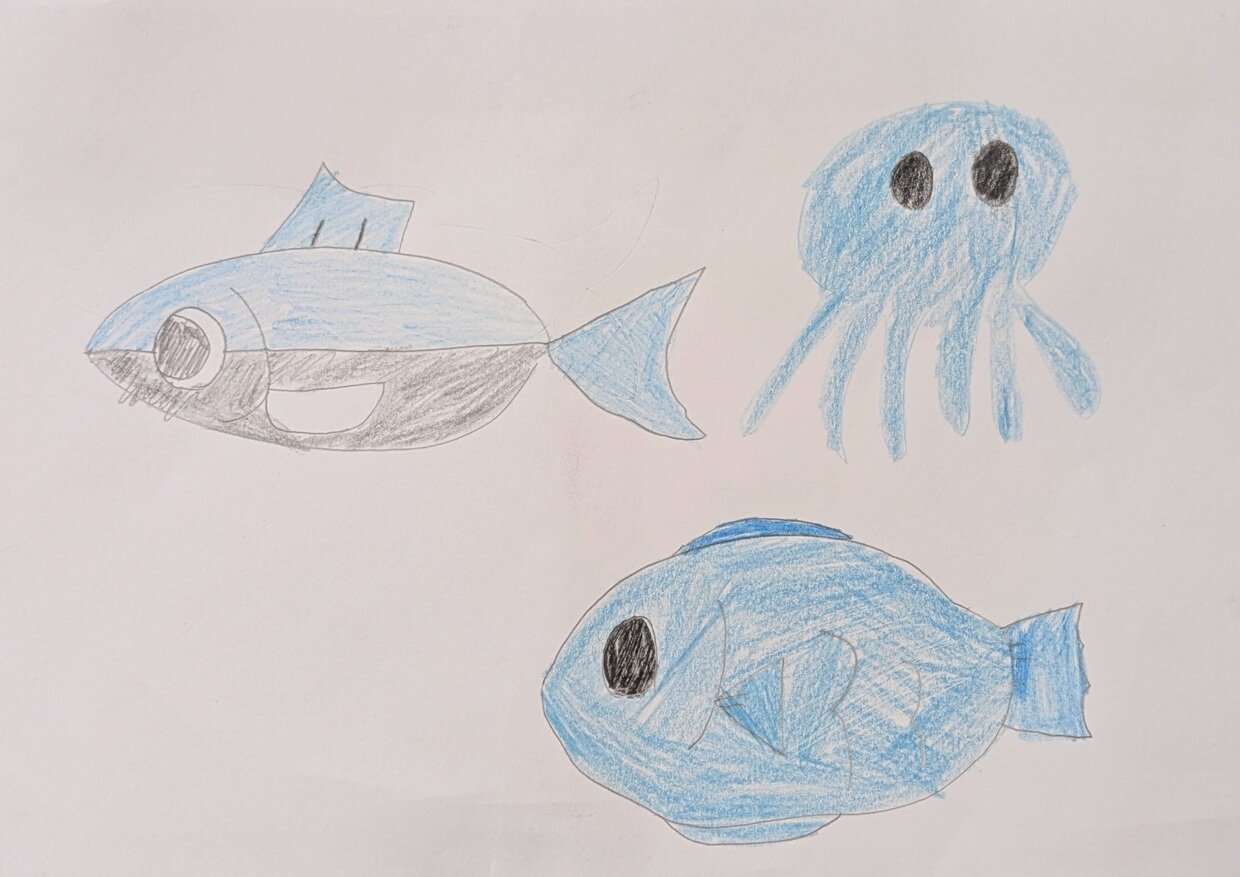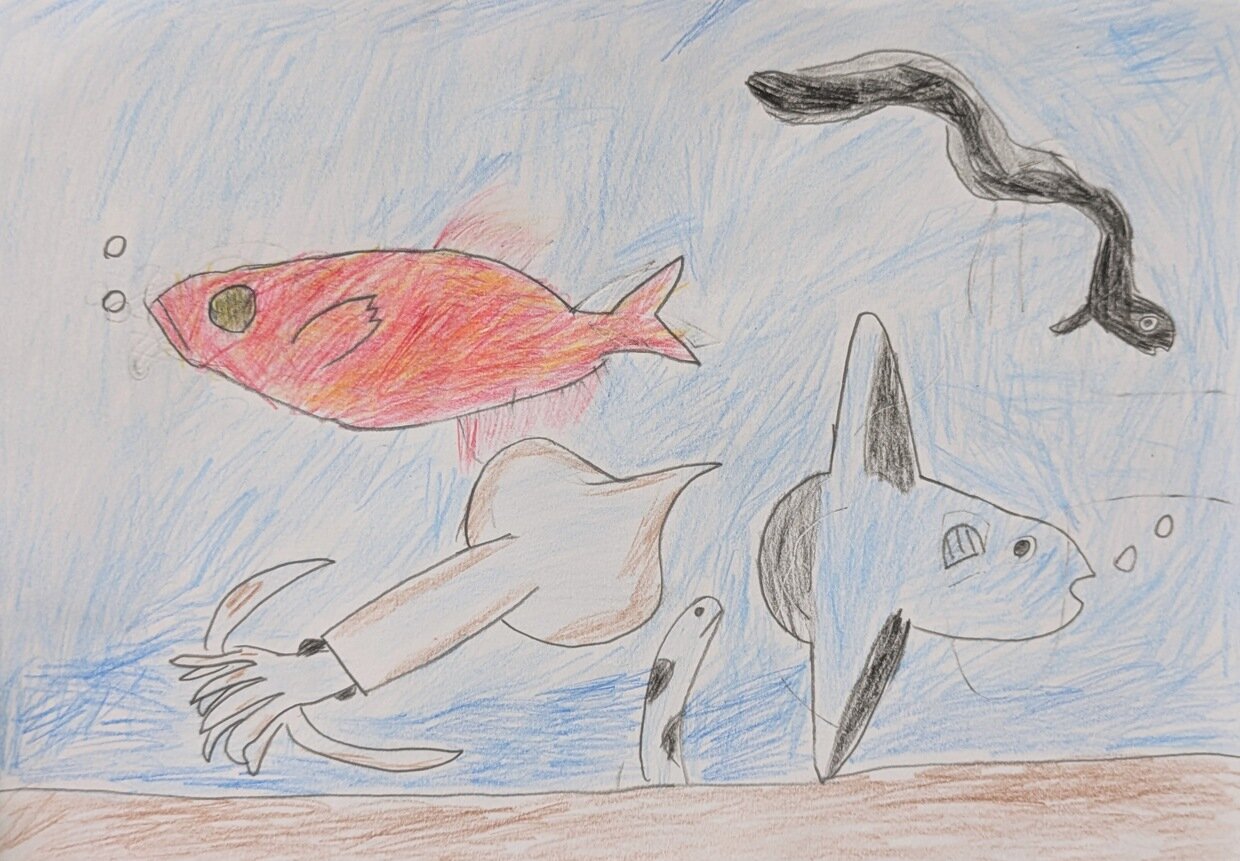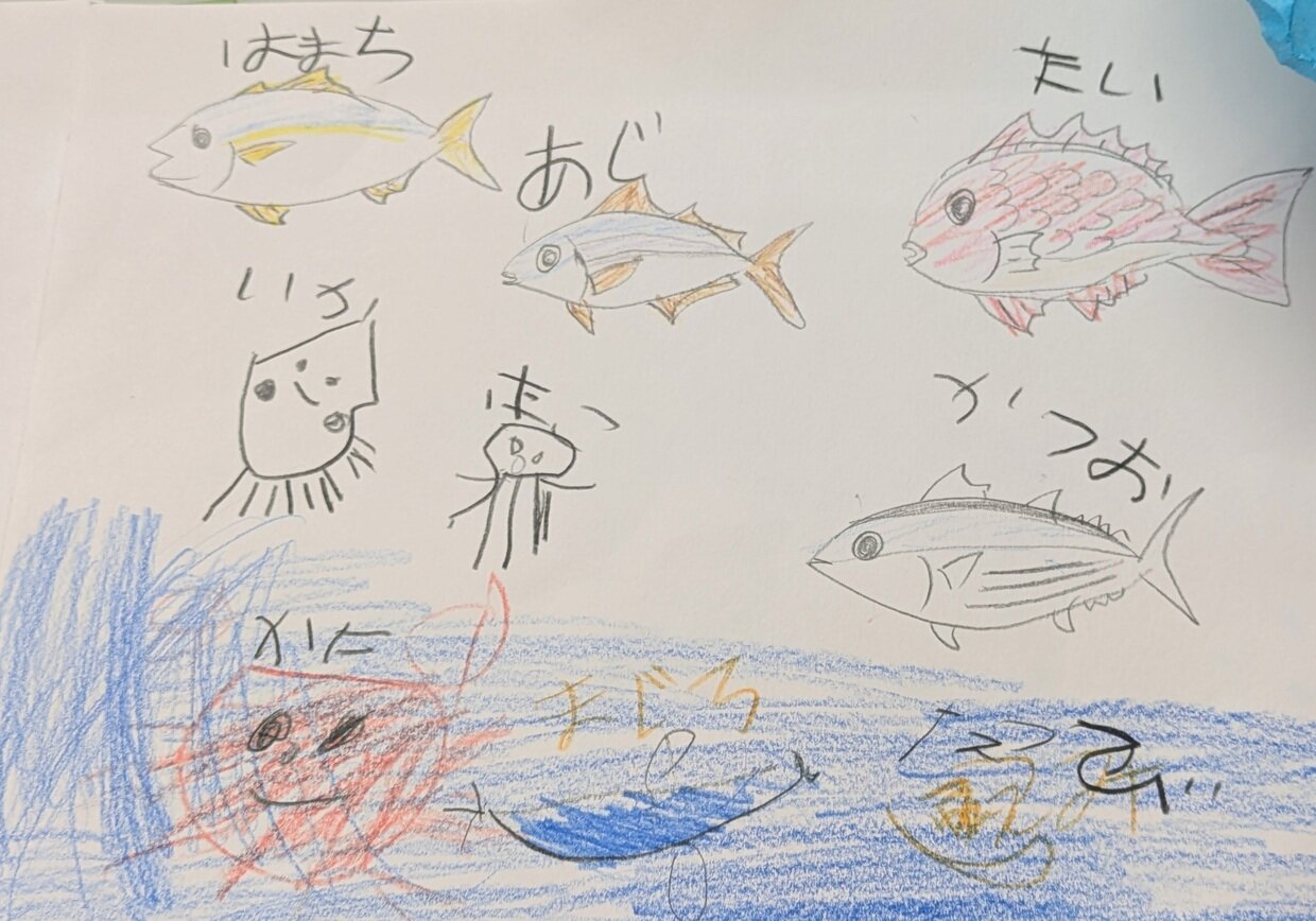 ここからは、子供たちが描いてくれた魚やおすしの絵を