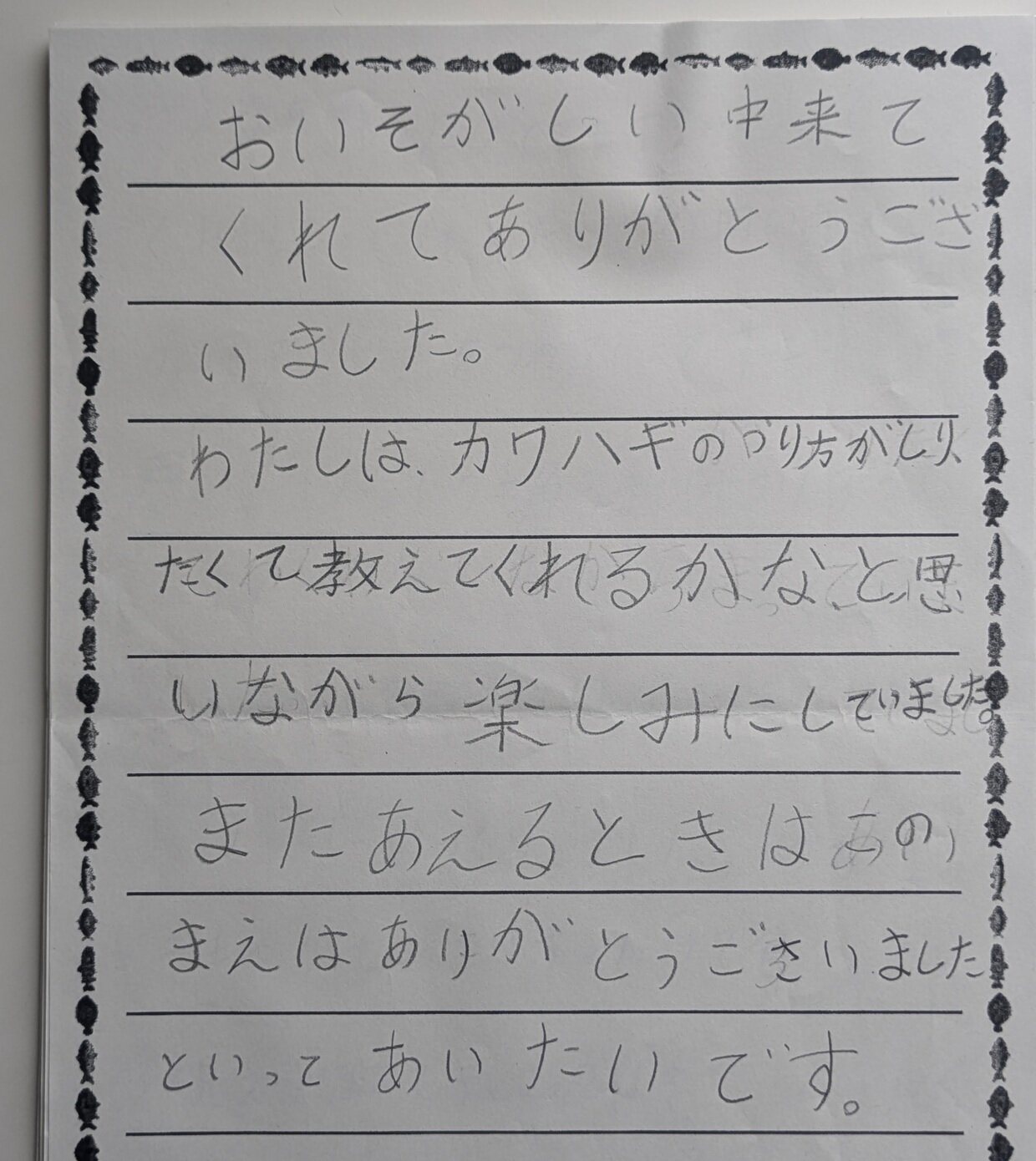 ぼくがつりで釣る魚の数は、10匹前後くらいです。