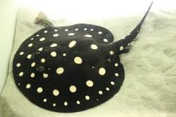 トビエイ目ポタモトリゴン科ポタモトリゴン属ポルカドットスティングレイ アマゾン川の支流、シングー川に生息する固有種の淡...