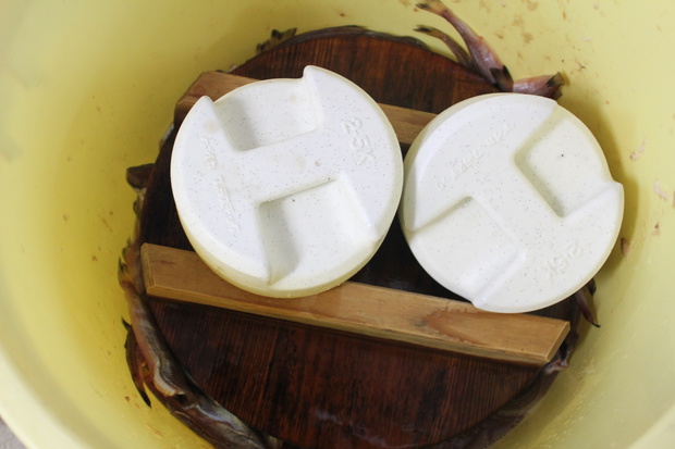 2日目は軽めの重しをし、3日目からはしっかり重しをする。
