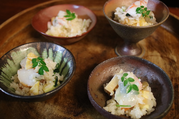 灰持酒とごはんや具材から出た水分が混ざり合って