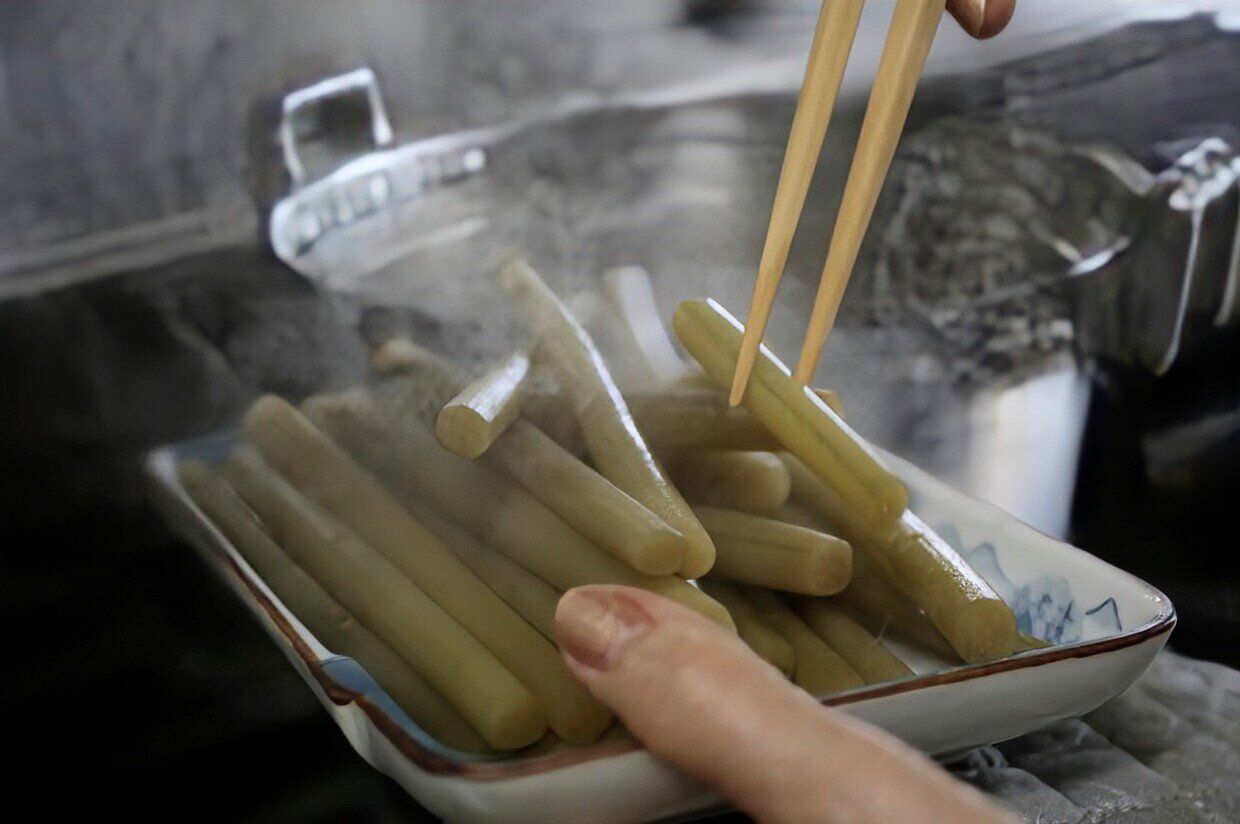 細長く干された干し大根を甘じょっぱく炊いたものを小さく刻みます。