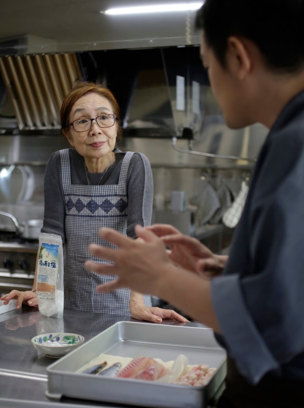味を確かめて、頷いたあと「岡田さんも味見お願いします。」と