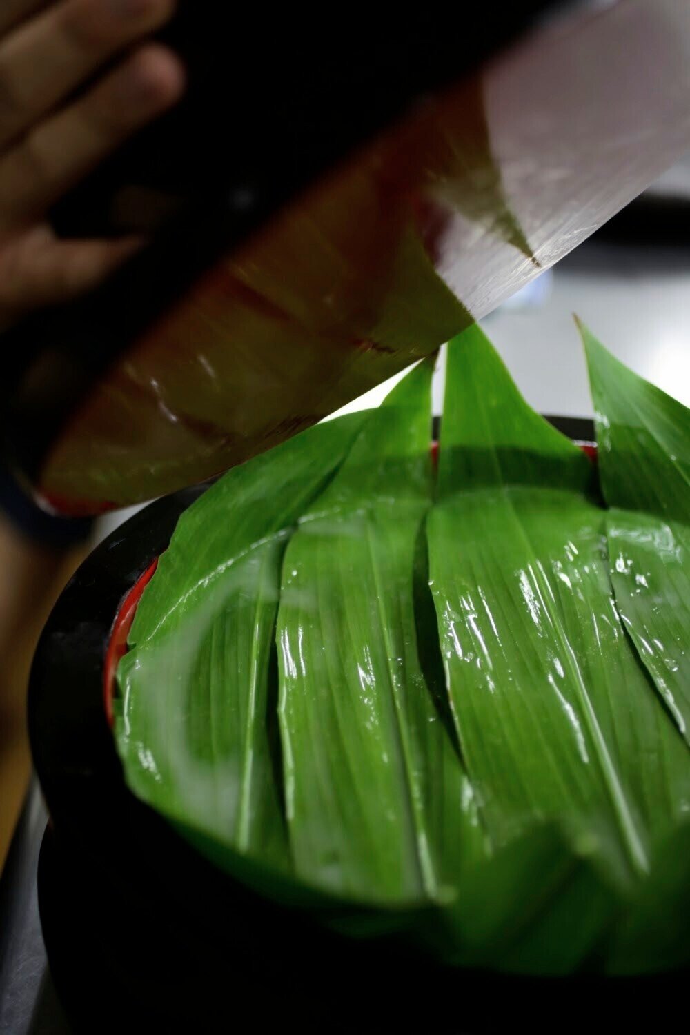 白濁した液体がハランの隙間から滲み出ています。