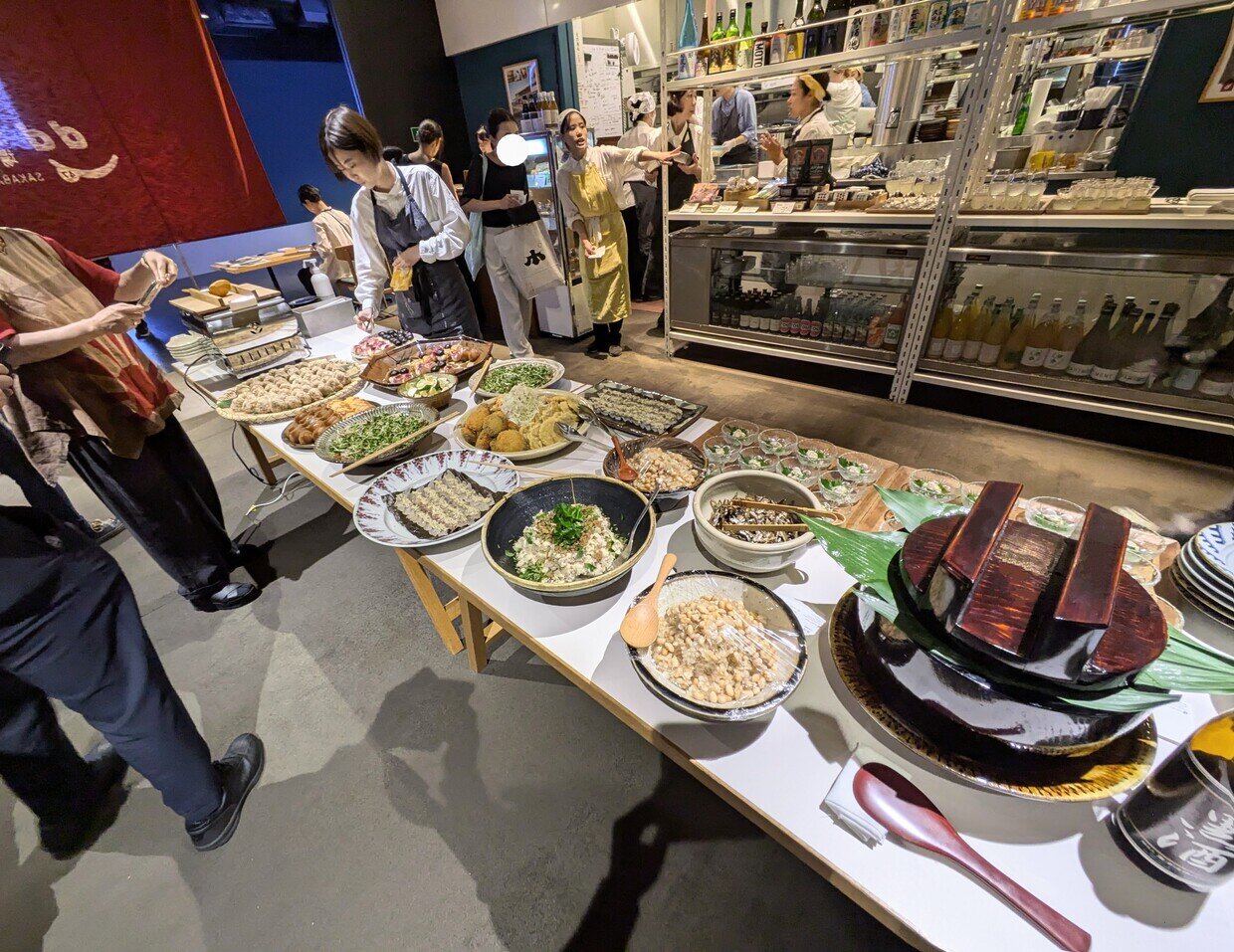 日本各地の郷土料理がずらりと並ぶ中に、酒ずしの桶。