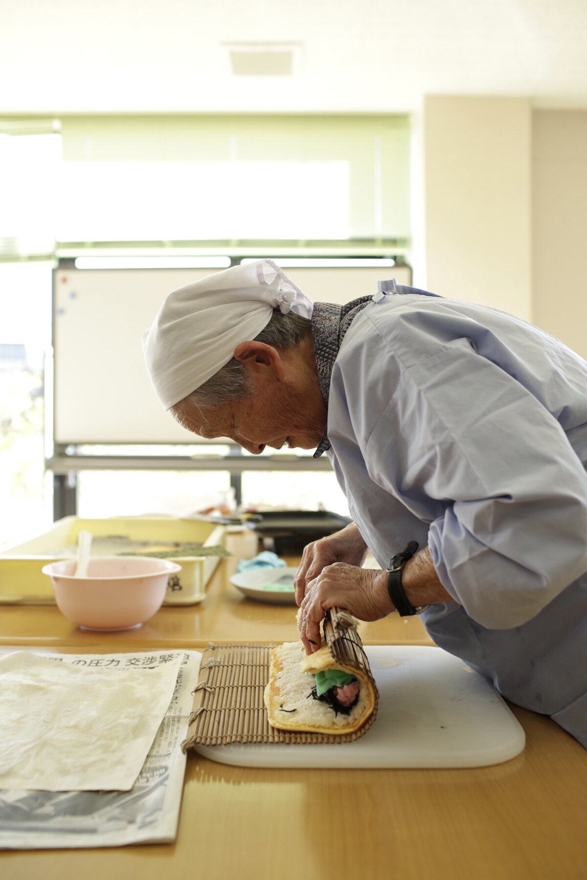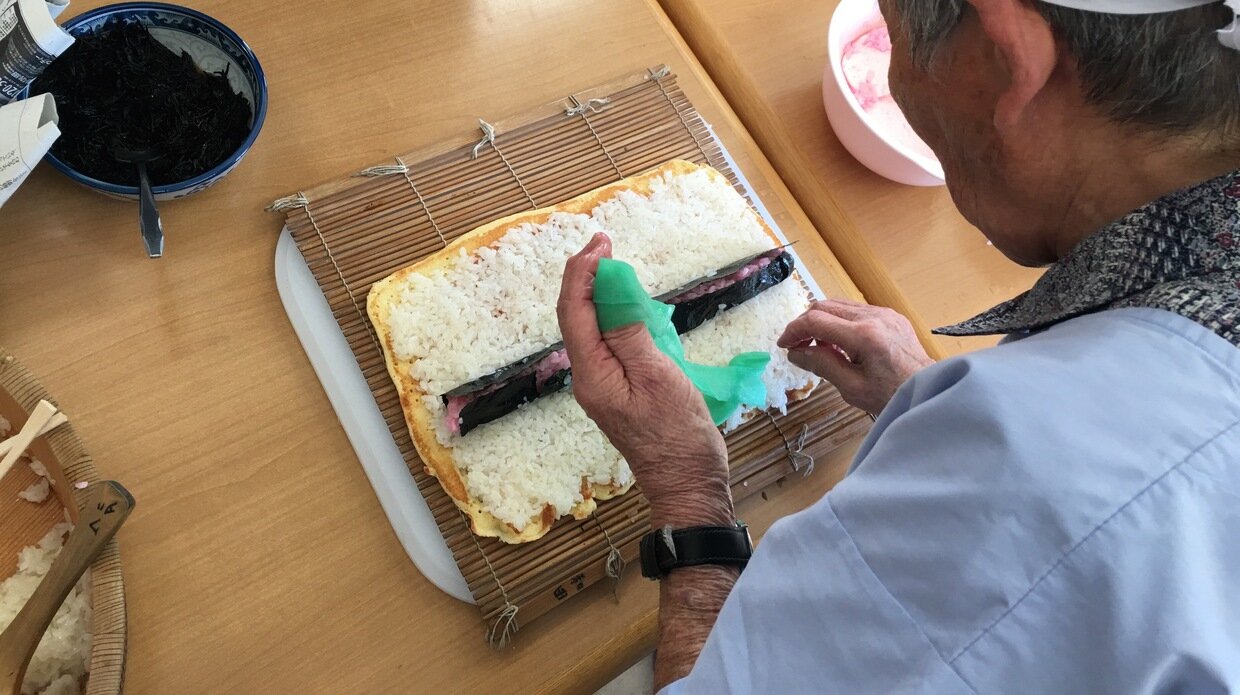 「酢飯はぺったんこにしないと、巻きにくいからね」と