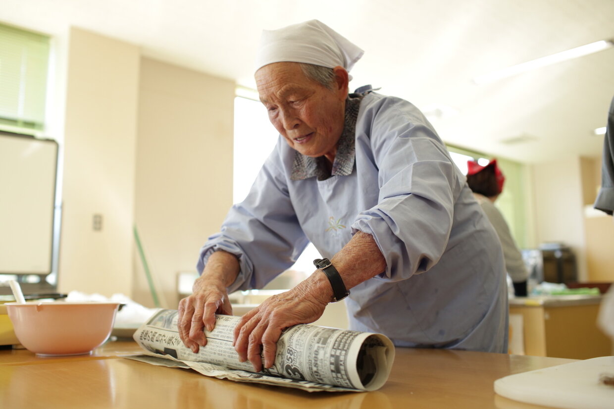 サッと半紙と新聞紙を広げてくださる和田さん。