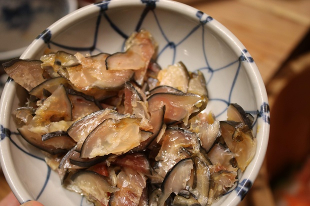 皮を付けたままにすることで、完成した飯寿司を食べる際に様々な部位を様々な食感と見た目で楽しめるようにおもてなしの気持ちが込められていました。